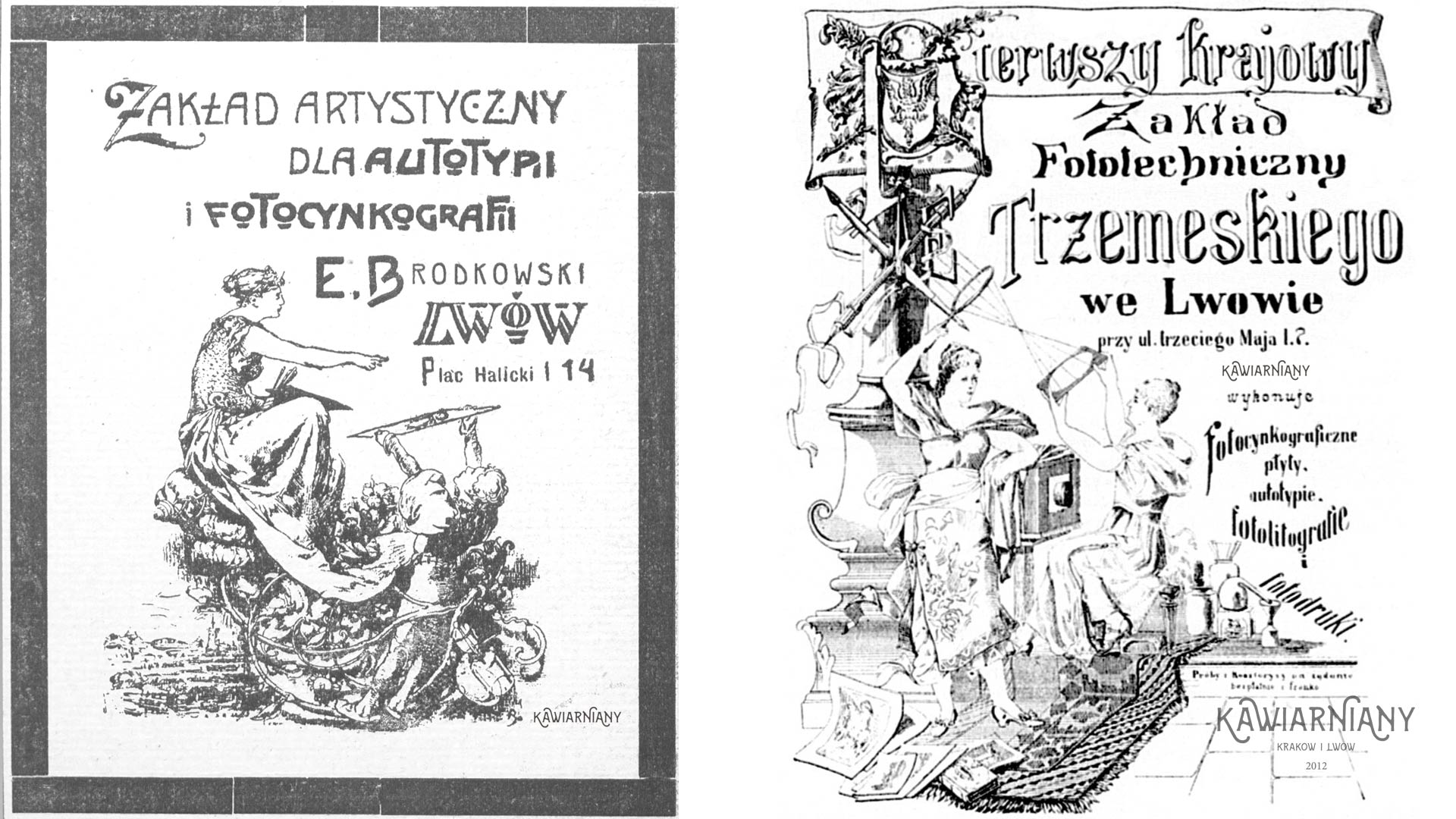 O ile wynajęcie ilustratora do przygotowania jednorazowego dzieła nie było rzeczą nadzwyczajną o tyle na pochwalę zasługują również lwowskie przedsiębiorstwa, które zamiast zwykłych reklam decydowały się na znacznie bardziej wyróżniające się ogłoszenia prasowe. Wśród nich prym wiodły przede wszystkim lwowskie firmy fotograficzne konkurujące chociażby ze słynnym studiem Adela z Pasażu Mikolascha. Poniżej reklama firmy fotograficznej Edmunda Brodkowskiego z czasopisma Śmigus z 15 grudnia 1904 roku. Zaraz obok kolejny wielki lwowski fotograf Edward Trzemski i jego studio fototeczniczne na reklamie prasowej z 15 grudnia 1891 roku wydanej w gazecie Czas.