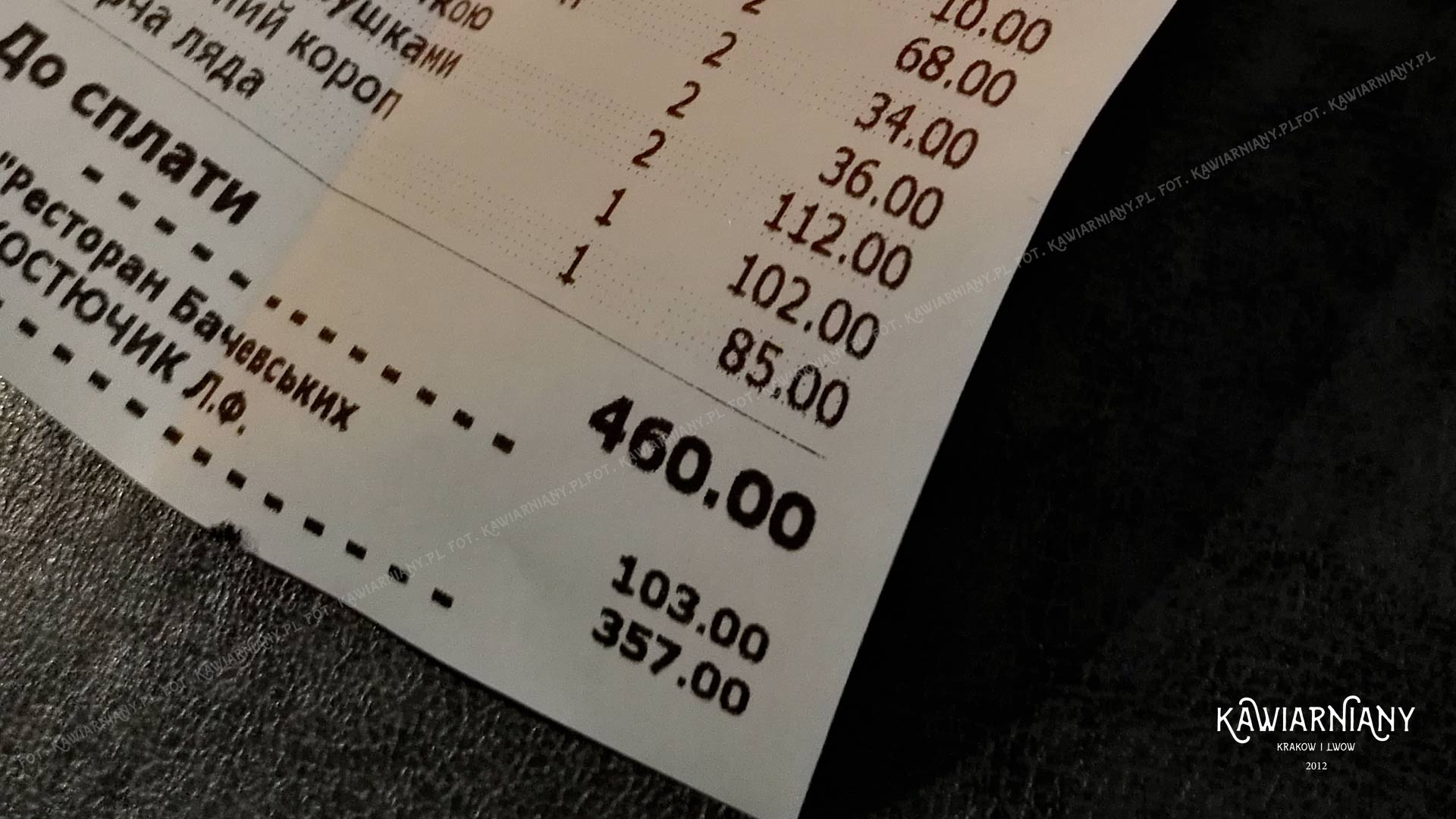 Uwaga! W restauracjach i kawiarniach na Ukrainie powszechne są dwie płatności kartą za jeden rachunek. To nie oszustwo. Dwie płatności – osobna za jedzenie, osobna za napoje w tym zwykle napoje alkoholowe – spowodowana jest różnymi stawkami podatkowymi i nie jest żadną formą naciągania turystów. Lepsze miejsca takie jak chociażby Mon Chef odchodzą jednak od dwóch transakcji.