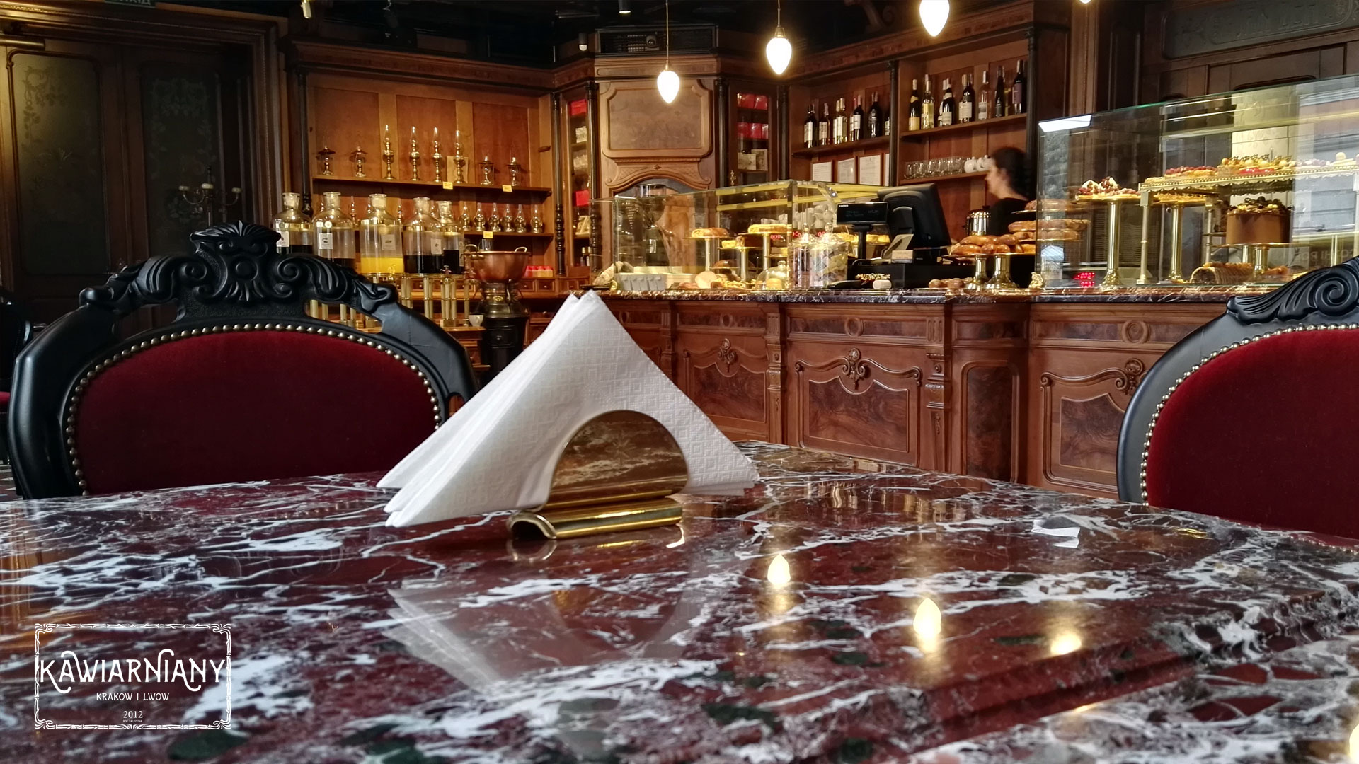 Na stronie opisaliśmy już dziesiątki najlepszych kawiarni we Lwowie ale na kawiarnianej mapie Lwowa pojawiło się niedawno całkiem nowe miejsce. W starej aptece Pod Złotą Różą w dawnym Pasażu Mikolascha przy ul. Kopernika 1 otwarto nowy lokal. Po czteroletnim remoncie ruszyła kawiarnia Apteka Mikolascha. Bezapelacyjnie jest to najlepsza kawiarnia we Lwowie, a ceny aż zachęcają do wykupienia całego asortymentu oferowanych tu napojów, ciast i przekąsek. Jak jest w Aptece Mikolascha?